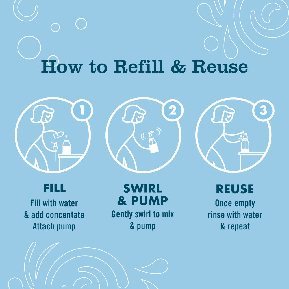 - This concentrated refill can be used to refill the glass bottle or our single-use foaming hand soap bottles