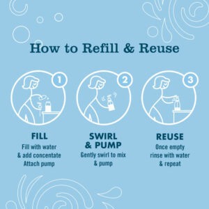 - Each starter kit comes with a reusable glass bottle + two ready-to-use refills