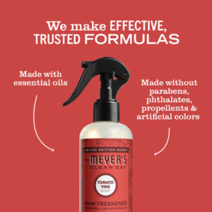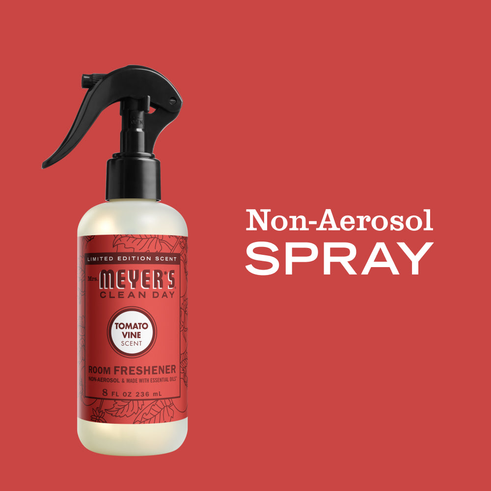 - Mrs. Meyer’s Clean Day Tomato Vine air freshener spray is made with essential oils and other thoughtfully chosen ingredients, and gives your home instant freshening between cleaning days